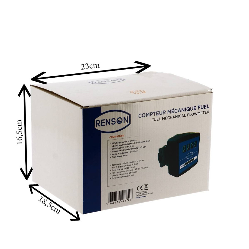 A Renson mechanikus mérőóra gázolajra – 3 karakteres praktikus és tartós eszköz gázolaj mennyiségének mérésére. Mechanikus kialakítása miatt nincs szükség áramellátásra vagy bonyolult elektronikára, így egyszerűen integrálható meglévő gázolaj-kiadó rendszerekbe.